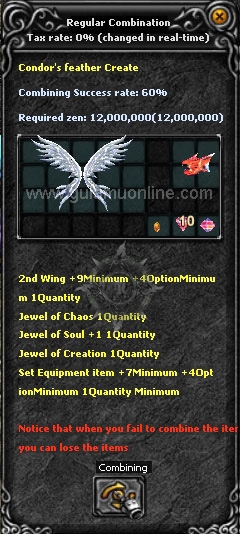 Si la combinacion falla, los items desaparecerán, si la combinacion es exitosa, obtendras una Condor Feather.