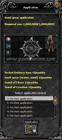 2 - Insertar los items necesarios, selecionar el Slot donde se va a insertar la opcion Seed Sphere y hacer click en Application.