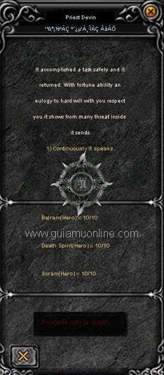 - Metodo para completarlo: Ingresa al Cuartel de Ballgass y matar 20 Balram, 20 Death Spirit y 20 Soram.